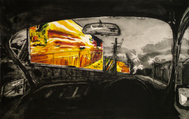 steelplate etching /aquatint and monotype 45 x 80cm 1997 Variable edition of 20 + 5 artist proofs Dusk Electric Thornton Bevan Fine Art, London 1997