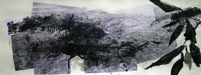 ink & laserprint collage on paper 50 x 120cm 2005 First exhibited 2006 in ‘The Red Coast’ @ the Scottish Gallery, Edinburgh . Work based on an artists residency trip to Corsica at the Foundation Francois Ollandini, Ajaccio, Corsica.