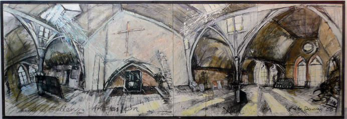 Exhibited at The Society of Scottish Artists 1989, RSA Galleries in Edinburgh, this 4-part painting tracks the daylight entering the church attic archive of the Richard Demarco Gallery in St Mary’s Street, Edinburgh.