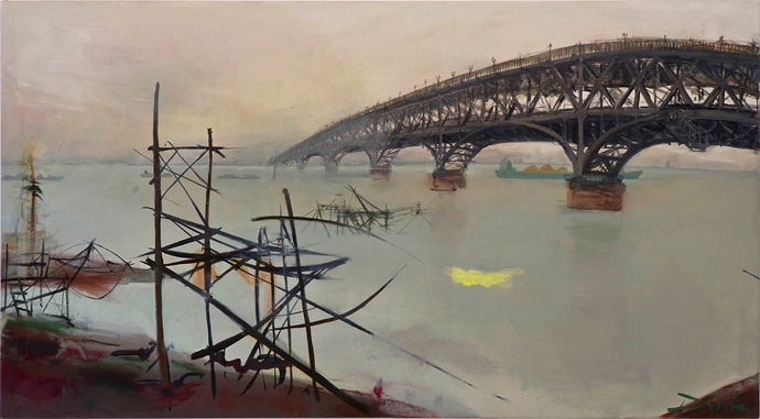 The paintings The Yangtze River Bridge, Forth Family, Ofrenda and NanBei are based on two iconic Chinese rivers and two British estuaries, each one a palimpsest of memory, history, experience and encounter. Although they are painted in oils, they came about following my studying and experimentation since 2010 within the Chinese ink painting tradition.