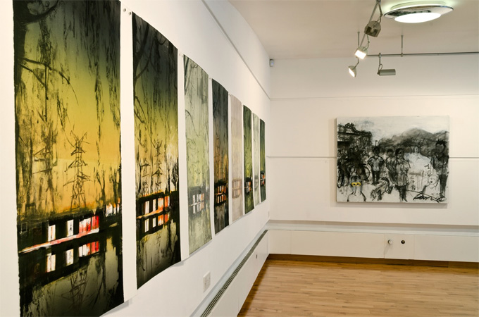 Installation view monoprint series Walk Through Resonant Landscape II The Royal Glasgow Institute, Kelly Gallery 2013